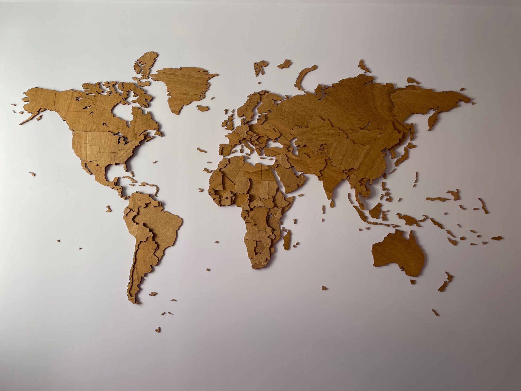 Amikor az első térképet az irodánkban, ahol a cégünk központja van, felhelyeztük, nagyon szórakoztató volt. Egyenként ragasztottuk fel a kontinenseket, és még a szigetekkel is eljátszadoztunk. Már akkor az volt az elképzelésük, hogy egyszer minden egyes országban lesz legalább egy fatérképünk. Így hát, egyelőre legalább itt van egy fotógaléria a világ minden táján felhelyezett térképeinkről.